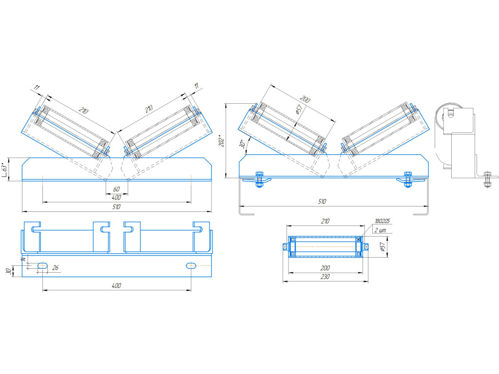 размещения ленты на конвейере. Данный элемент состоит из роликовой опоры в
